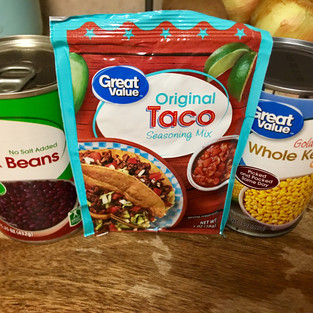 4. Now, gather your ingredients for the stuffing. You will need a can of black beans, corn, and taco seasoning. If you prefer quinoa, go for it, but brown rice will work just fine. I like to drain and rinse my black beans and corn before I place them in my mixing bowl. Throw in your taco seasoning and start working on making your rice.